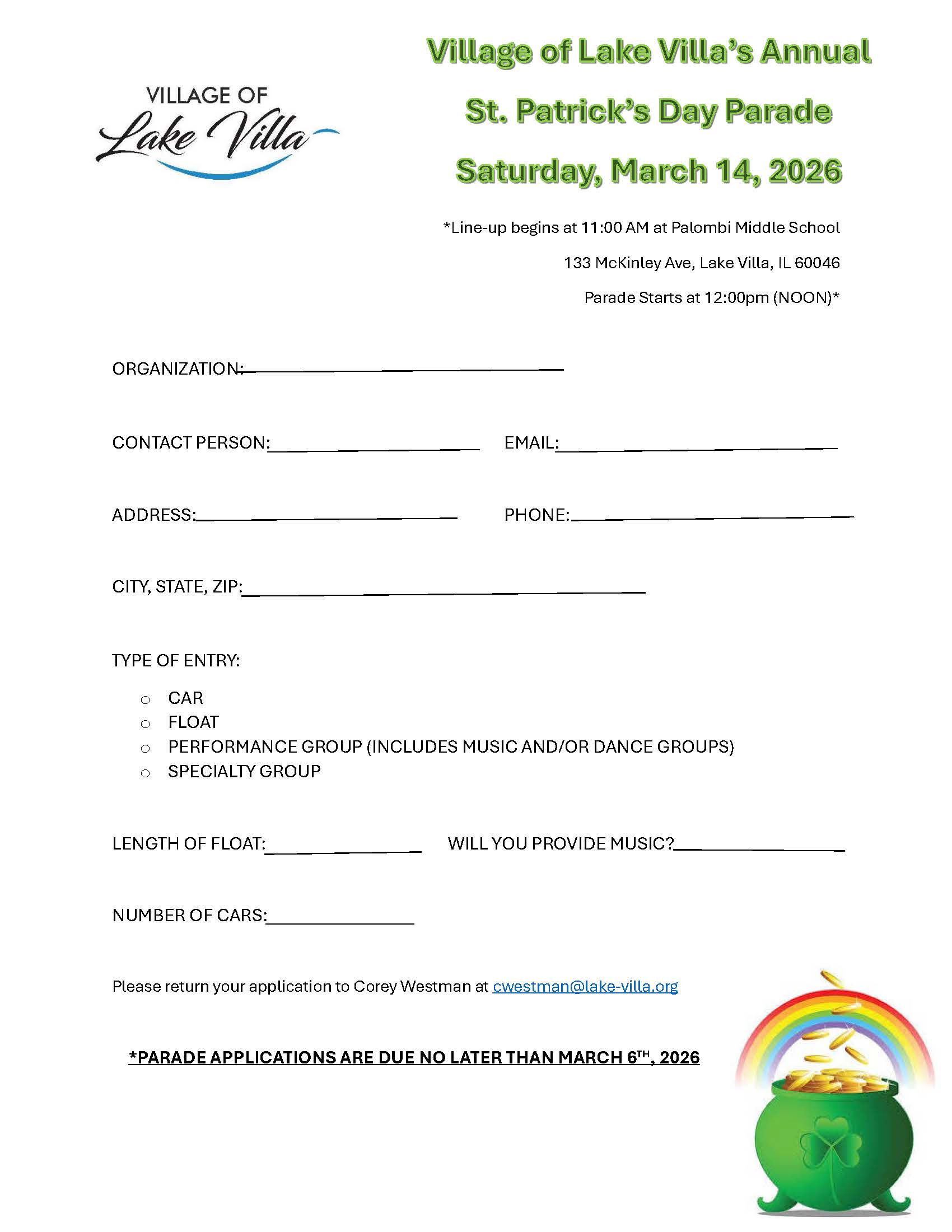 2026 St. Patrick's Day Parade Application